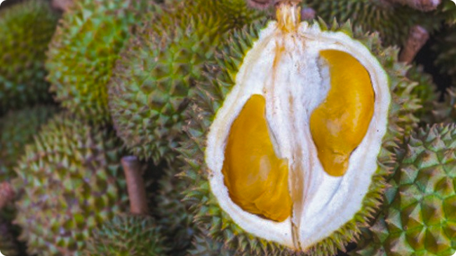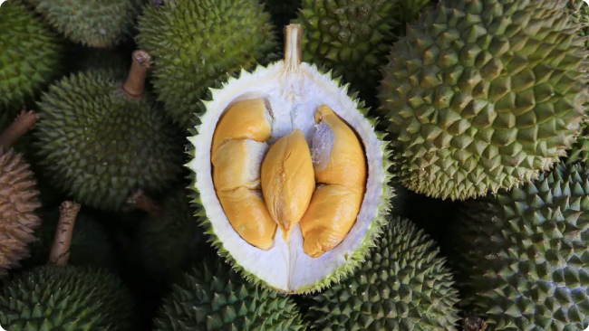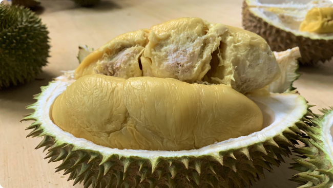 D24 durians are also known as Sultan durians that are favored for their thick, soft flesh with a bitter-sweet flavor. Compared to other durians, D24 are mostly used in cooking because it is easier to get out of their season.